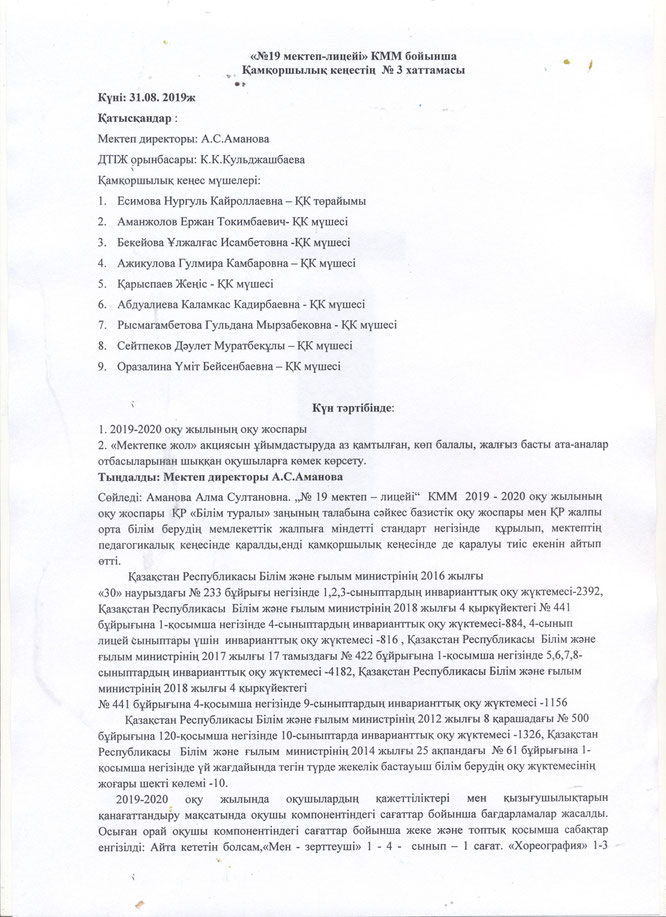 Қамқоршылық кеңесінің № 3 хаттамасы