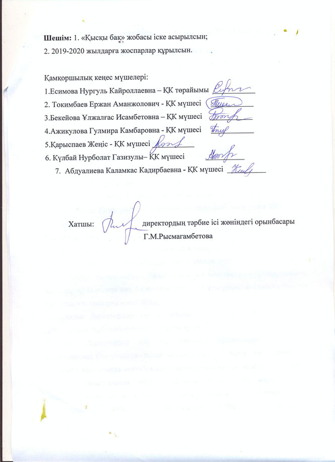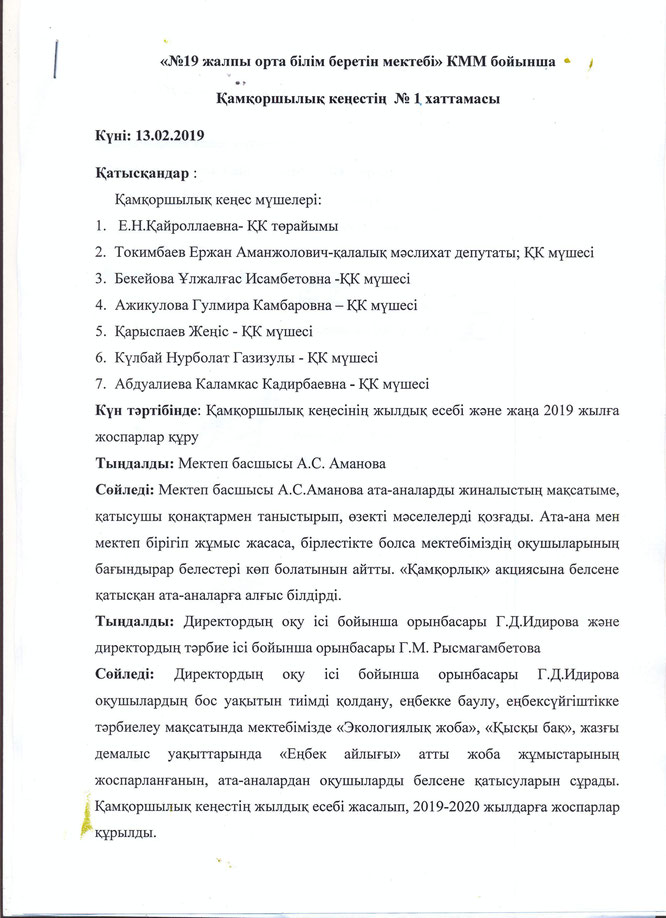 Қамқоршылық кеңесінің № 1 хаттамасы