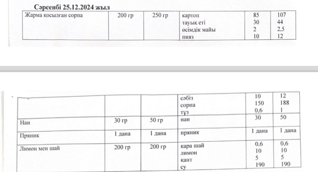 Ас мәзіріне орналастыру 25.12.2024
