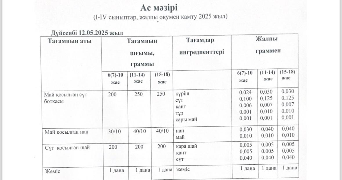 | 1 | Асхана мәзірі |